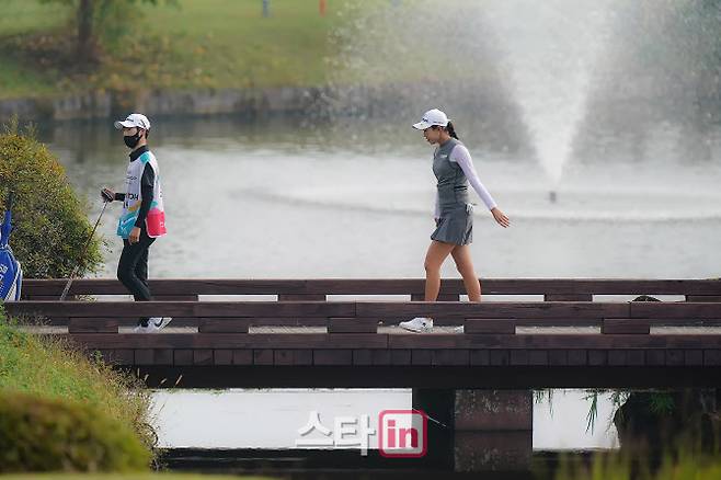 [이데일리 골프in=포천 박태성 기자] 1일 경기 포천시 아도니스CC(파71/6,480야드)에서 한국여자프로골프(KLPGA)투어 스물세 번째 대회인 '하나금융그룹챔피언십'(총상금 15억원,우승상금 2억 7천만 원) 2라운드가 열렸다.노예림(하나금융그룹)이 15번홀 다리를 건너고 있다.