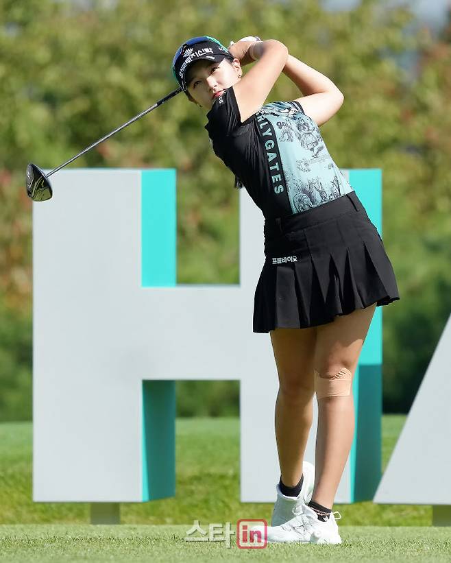 [이데일리 골프in=포천 박태성 기자] 1일 경기 포천시 아도니스CC(파71/6,480야드)에서 한국여자프로골프(KLPGA)투어 스물세 번째 대회인 '하나금융그룹챔피언십'(총상금 15억원,우승상금 2억 7천만 원) 2라운드가 열렸다.박현경(한국토지신탁)이 1번홀 티샷을 날리고 있다.