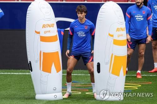 epa09499562 Atletico Madrid's Portuguese striker Joao Felix attends the team's training session held at Wand Sports City in Majadahonda, Madrid, Spain, 01 October 2021. Atletico Madrid will be facing FC Barcelona in a Spanish LaLiga soccer match on 02 October 2021. EPA/RODRIGO JIMENEZ