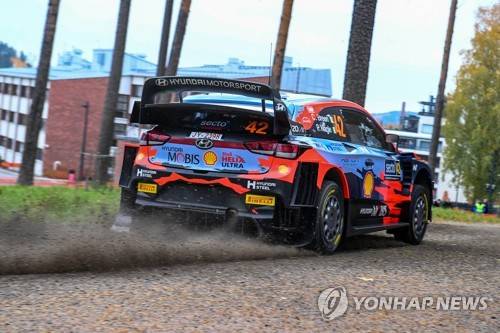 epa09499566 Ireland's Craig Breen and his co-driver Paul Nagle steer their car Hyundai i20 Coupe WRC during the EK/SS1 Harju 1 on the first day of the Secto Automotive Rally Finland as part of the World Rally Championship (WRC) near Jyvaskyla, Finland, 01 October 2021. EPA/KIMMO BRANDT