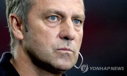 FILE - In this Sunday, Sept. 5, 2021 file photo, Germany's head coach Hansi Flick attends a tv interview prior to the World Cup 2022 group J qualifying soccer match between Germany and Armenia at Mercedes-Benz Arena stadium in Stuttgart, Germany. Germany's national soccer team coach Hansi Flick has included Barcelona goalkeeper Marc-Andre ter Stegen and Borussia Mönchengladbach defender Matthias Ginter to the Germany squad for its upcoming World Cup qualifiers against Romania and North Macedonia. (AP Photo/Matthias Schrader, file) SEPT. 5, 2021 FILE PHOTO