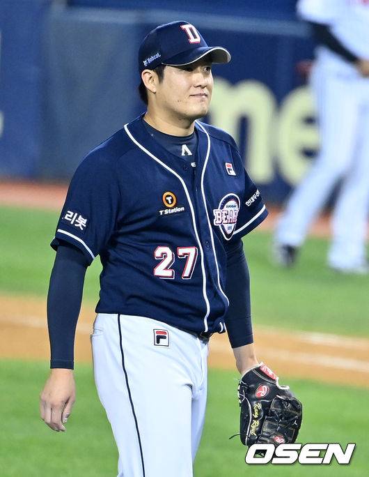 경기를 마치고 두산 김강률이 기뻐하고 있다. 2021.10.01 /jpenws@osen.co.kr