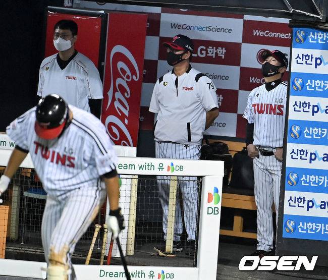 9회말 무사 1,2루에서 LG 김민성이 병살로 물러나자 류지현 감독이 아쉬워하고 있다.