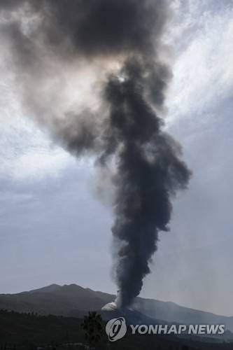 epa09499811 Smoke and ashes rise from Cumbre Vieja volcano as seen from Tajuya, La Palma, Canary Islads, Spain, 01 October 2021. The sulfur dioxide (SO2) emissions by the volcano have increased, although they do not seem to be a risk for the population for now, according to the Spanish National Security Department (DSN). EPA/Angel Medina