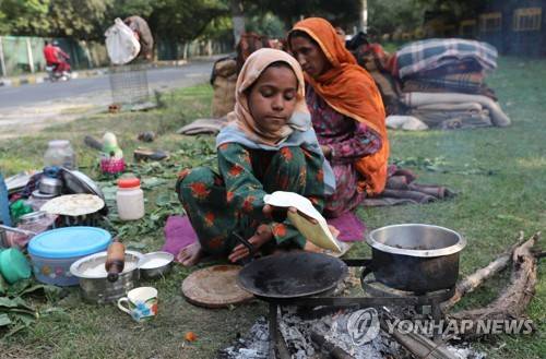 epa09499904 A Bekarwal nomad community girl prepares bread for her family members at a roadside temporary camp in Srinagar, the summer capital of Indian Kashmir, 01 October 2021. The nomadic Bakerwal families have started returning back from Kashmir valley to wander in search of good pastures for their cattle as winter sets foot in Indian Kashmir. EPA/FAROOQ KHAN