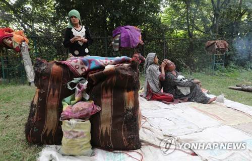 epa09499903 A Bekarwal nomad community woman cleans the head of her relative from lice at a roadside temporary camp in Srinagar, the summer capital of Indian Kashmir, 01 October 2021. The nomadic Bakerwal families have started returning back from Kashmir valley to wander in search of good pastures for their cattle as winter sets foot in Indian Kashmir. EPA/FAROOQ KHAN