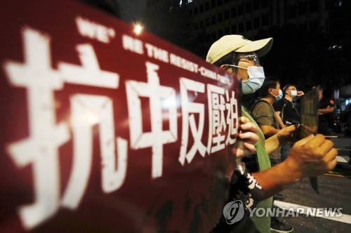 epa09499917 Protesters hold signs reading 'anti-Chinese oppression' during a joint protest joint by over 20 human rights and activist groups against Chinese political persecution and totalitarianism across the world, outside the island's parliament, Taipei, Taiwan, 01 October 2021. The protest is aimed at calling upon the Taiwanese government to review on laws regarding Hong Kong Macau, standing in solidarity with the Tibet, Uyghurs, Burmese and Hongkongers, and recognising the sovereignty of Taiwan. EPA/Daniel Ceng Shou-Yi