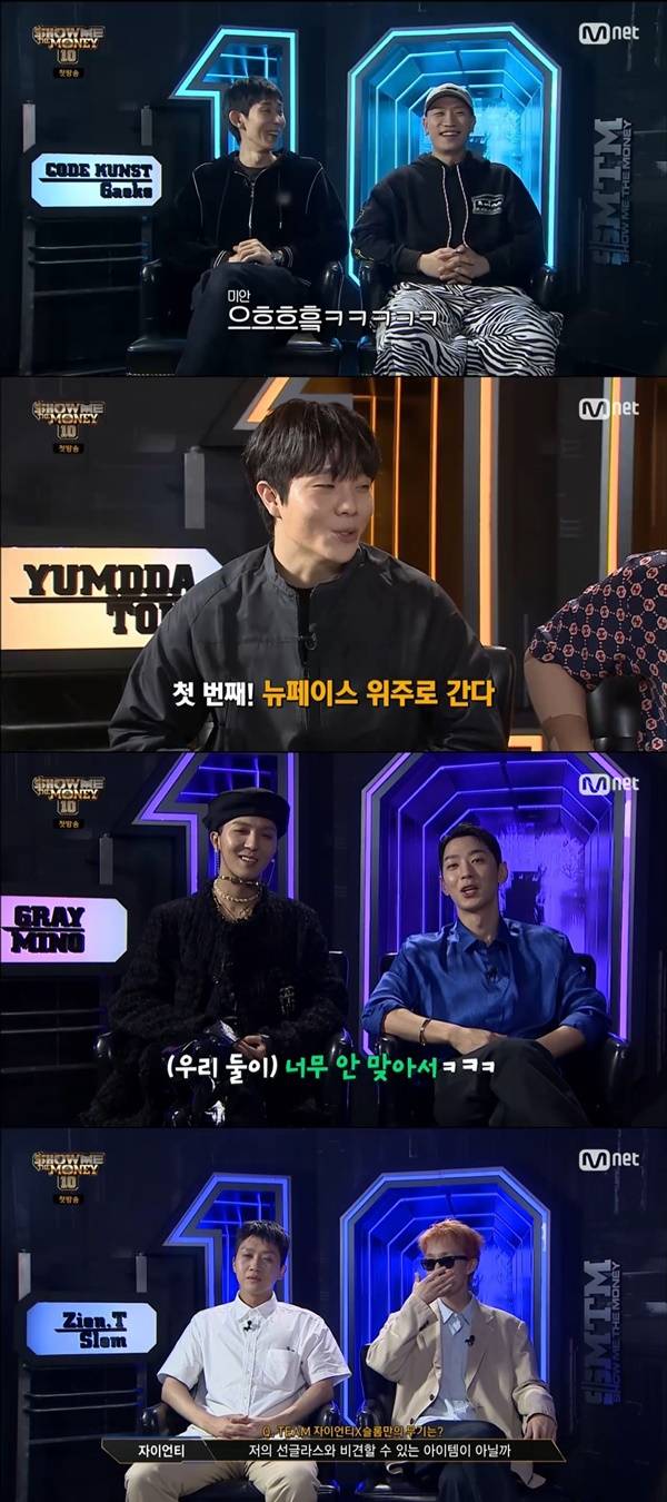 1일 첫 방송된 Mnet 힙합 서바이벌 '쇼미더머니 10'(이하 '쇼미10')에서는 그레이-송민호, 개코-코드 쿤스트, 염따-토일, 자이언티-슬롬이 프로듀서로 출연했다.
