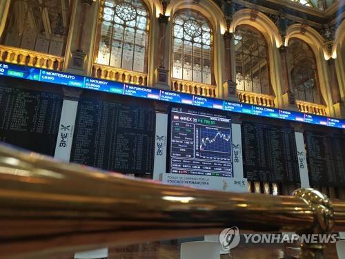 epa09500225 Screens show the evolution of Spanish main index IBEX 35 at the Stock Exchange Market in Madrid, Spain, 01 October 2021. The index IBEX 35 rose by 0.04 percent reaching close to 8,800 points at the end of the trading session. EPA/Vega Alonso del Val