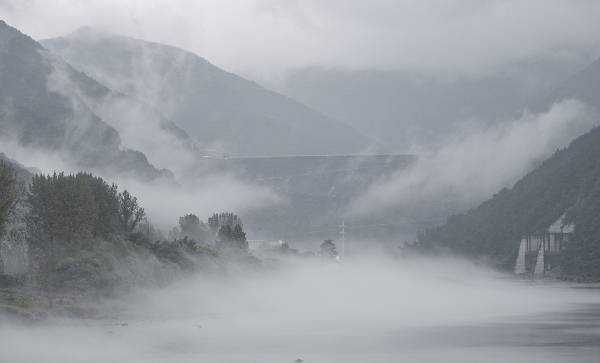 강원도 춘천 소양강댐 앞에 피어난 물안개가 한 폭의 수묵화를 그려냅니다. 조그만 바람에도 이리저리 밀려나 시시각각 다른 그림을 만듭니다. 아침부터 내린 비에 축축히 젖었던 마음이 물안개가 그려낸 풍경에 한결 포근해집니다.