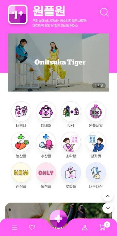 원플원은 이름 그대로 모든 제품을 하나 사면 하나를 덤으로 주는 '원플러스원(1+1)' 할인 방식으로 판매한다.