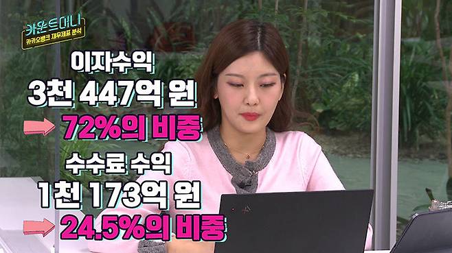 그런데 막상 수수료수익에서 가장 큰 비중을 차지하는 건 카드 수입수수료입니다. 683억원으로 거의 60%를 차지하거든요. 개인적으로는 조금 실망스러웠습니다. 이건 기존 은행에도 존재하는 수수료이기도 하거든요.