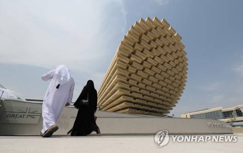 epa09501821 People visit the UK Pavilion during the second day of the EXPO 2020 Dubai in Gulf emirate of Dubai, United Arab Emirates, 02 October 2021. 192 countries take part with their pavilions in the EXPO 2020 Dubai which is the first international Expo to be held in the Middle East, Africa and South Asia (MEASA) region running between 01 October 2021 and 31 March 2022. EPA/ALI HAIDER