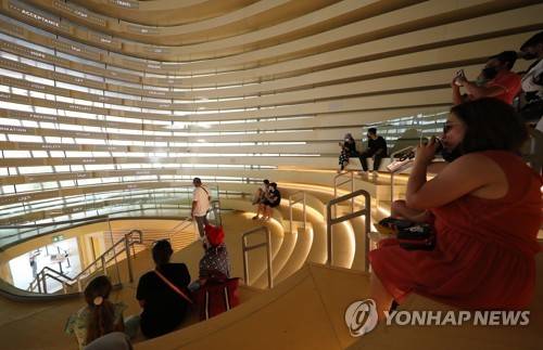 epa09501837 People visit the UK Pavilion during the second day of the EXPO 2020 Dubai in Gulf emirate of Dubai, United Arab Emirates, 02 October 2021. 192 countries take part with their pavilions in the EXPO 2020 Dubai which is the first international Expo to be held in the Middle East, Africa and South Asia (MEASA) region running between 01 October 2021 and 31 March 2022. EPA/ALI HAIDER
