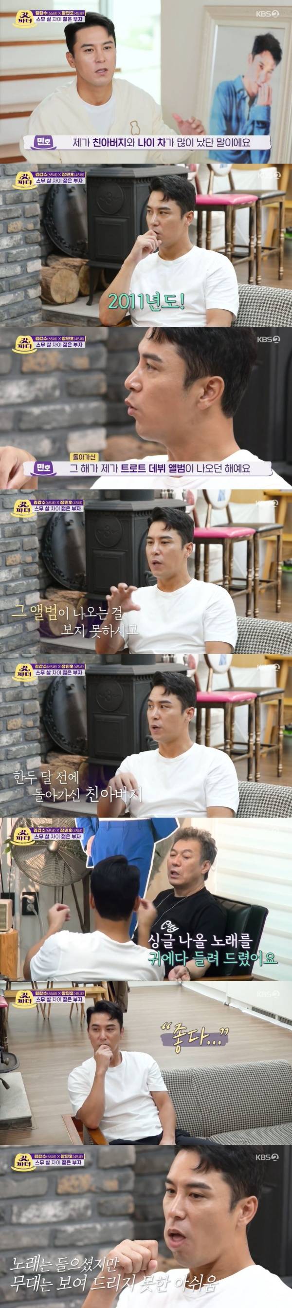 2일 방송된 KBS 예능 프로그램 '갓파더'에서는 아버지에 대한 그리움을 감추지 못하는 장민호의 모습이 그려졌다.