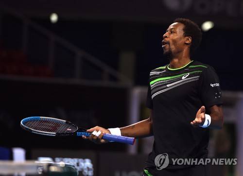 epa09501896 Gael Monfils of France reacts during his semi final match against Marcos Giron of the USA at the Sofia Open ATP 250 tennis tournament in Sofia, Bulgaria, 02 October 2021. EPA/VASSIL DONEV