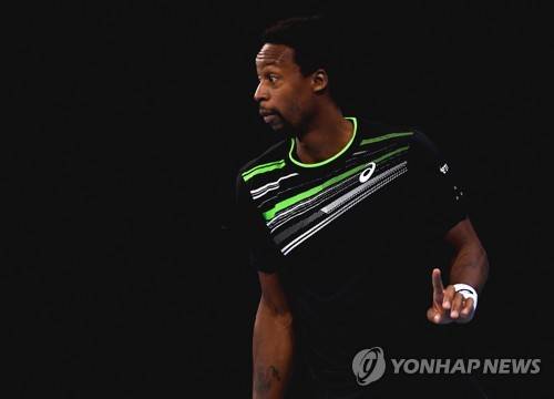epa09501899 Gael Monfils of France reacts during his semi final match against Marcos Giron of the USA at the Sofia Open ATP 250 tennis tournament in Sofia, Bulgaria, 02 October 2021. EPA/VASSIL DONEV