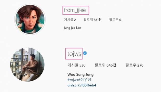 대중은 이정재의 인스타그램 아이디에 집중했다. 그의 아아디는 'from_jjlee'. 정우성의 아이디는 'tojws'. to와 from은 편지에 쓰이는 단어로 to는 ~에게 from은 ~로부터로 짝꿍인 단어다.
