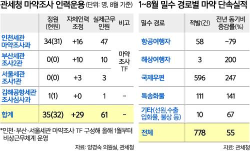 [단독] 세관 마약업무 인력 충원 없이 '기형 운영'.. 수사 구멍 우려