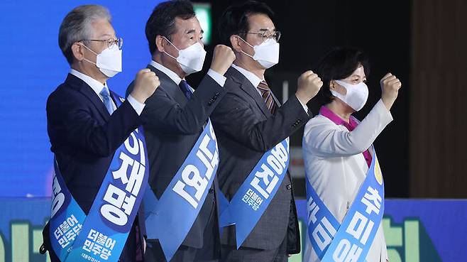 반면 이낙연 후보는 "정권 재창출이라는 절체절명의 과제를 안고 있지만 상황은 만만치 않고 불안하다, 무엇이 불안한지 우린 안다"며 이재명 후보를 정조준한 '불안한 후보론'을 폈습니다.