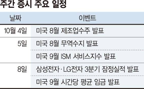 이번 주부터 기업들의 3·4분기 실적 전망치를 내놓는 실적 시즌이라 실적 결과에 따라 증시에 일부 긍정적 요인을 미칠 수 있을 것으로 보인다. 최근 4주간 삼성전자 3·4분기 매출액과 영업이익 컨센서스는 각각 1.4%, 2.3%씩 상향 조정된 만큼 코스피 실적은 좋을 것으로 예상된다. 다만 주가 상승을 크게 일으킬 모멘텀으로 작용하긴 어려울 것이라는 전망이다.