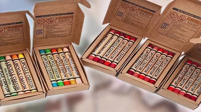다양한 채도로 미묘한 색감을 낸다는 이 크레용은 립스틱을 재활용한 것입니다.