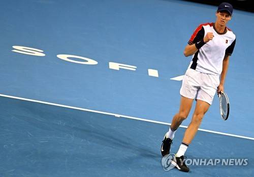 epa09503561 Jannik Sinner of Italy reacts during the final match against Gael Monfils of France at the Sofia Open ATP 250 tennis tournament in Sofia, Bulgaria, 03 October 2021. EPA/VASSIL DONEV