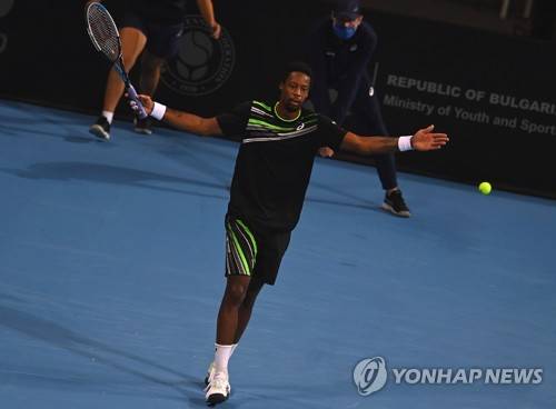 epa09503566 Gael Monfils of France reacts during the final match against Jannik Sinner of Italy at the Sofia Open ATP 250 tennis tournament in Sofia, Bulgaria, 03 October 2021. EPA/VASSIL DONEV