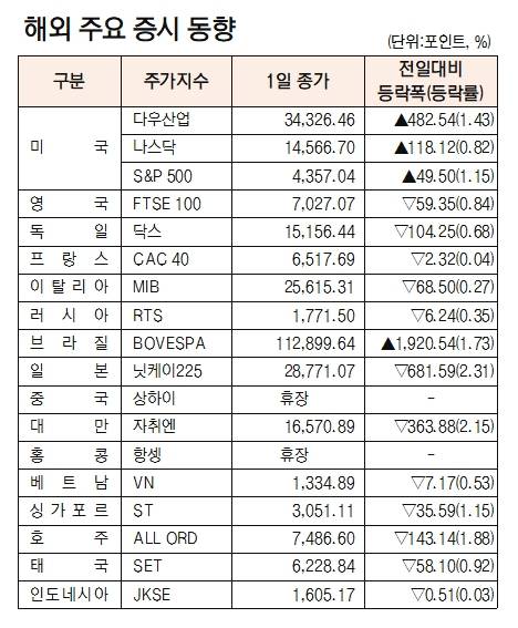 [표]해외 주요 증시 동향(10월 1일)