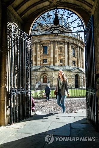 epa09505118 A handout photo made available by the Belgium Royal Palace shows Belgium's Crown Princess Elisabeth posing at Oxford University, Britain, 27 September 2021 (issued 04 October 2021). Belgium's Crown Princess started a 3 years study of Political science and History at Lincoln College of Oxford. EPA/Bas Bogaerts / BELGIUM ROYAL PALACE HANDOUT HANDOUT EDITORIAL USE ONLY/NO SALES