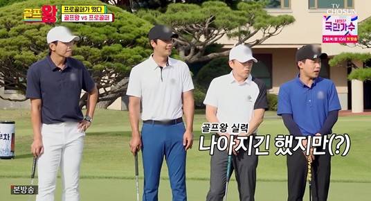 이날 골프왕 멤버들은 이동국, 양세형, 이상우, 자리를 비운 장민호를 대신해 김광규가 투입됐다. 쟁쟁한 프로골퍼 4인방의 등장에 양세형은 “저희가 나아지긴 했지만 이 정도는 아닌데”라고 당황한 반응을 보였다.