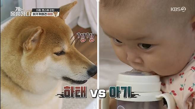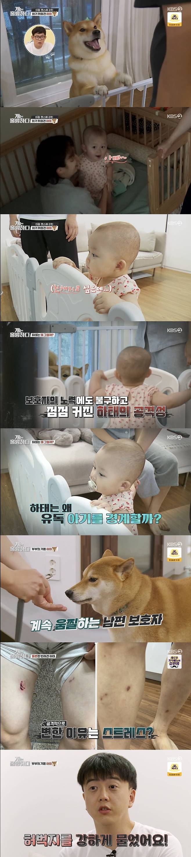 얼마 전 하태한테 아기가 다가가자 하태는 위협적으로 경계했다. 이중 펜스가 없었다면 아찔한 상황이었다. 아내 보호자는 "임신했을 때 강아지와 아기가 친해지려면 강아지가 먼저 훈련해야 한다고 해서 훈련했고, 아기 냄새가 밴 거즈를 하태가 냄새 맡게 한다거나 하는 노력을 했다. 임신 기간에도 하태에게 꾸준히 신경 썼지만 딸이 걷기 시작하면서 딸을 따라다녀야 해서 원래 하려고 했던 만큼 훈련을 이어나가지 못한 것은 있다"고 덧붙였다.
