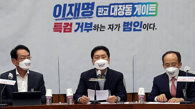김 원내대표는 오늘 국회에서 열린 국감대책회의에서 "이 후보가 자화자찬하는 대장동 개발사업은 치적이 아닌 치부로, 단군 이래 최대 토건 비리이자 희대의 대국민 사기극"이라며 이같이 말했습니다.
