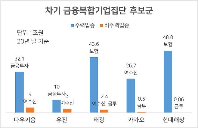 비주력 금융업종의 자산합계 기준을 5조원에서 3조원으로 낮추는 방안이 유력하게 거론된다. 다음달 상장 예정인 카카오페이는 최소 1조원의 자본을 모을 것으로 예상된다. 이 자금은 순차적으로 카카오페이증권과 카카오페이손해보험 등에 투자될 계획이다. 연내 카카오뱅크를 제외한 금융계열사 자산총액이 3조원을 넘길 수 있다.