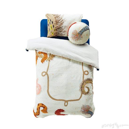 영국 일러스트레이터 케이티 스콧이 그린 일러스트가 하나의 작품처럼 펼쳐진 이불 커버 세트. 피부에 자극이 없는 오가닉 코튼으로만 이루어진 제품으로, 자연사 서적에서 봄직한 클래식한 그림체의 동물 패턴이 인상적이다.