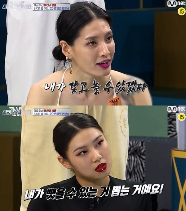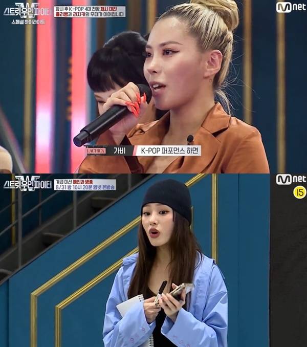 | ▲ Mnet <스트릿 우먼 파이터> 방송화면 (위) 가비 (아래) 노제 |