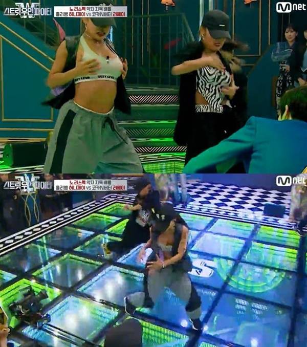 | ▲ Mnet <스트릿 우먼 파이터> 방송화면 허니제이와 리헤이가 1대1 배틀을 펼치고 있다 |