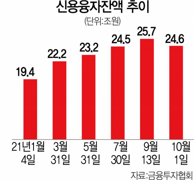 금융 당국에서도 증권사들의 신용거래 융자 증가에 대해 조치를 취하겠다는 입장이다. 고승범 금융위원장은 지난달 30일 자본시장 업계 관계자들을 만난 자리에서 “과도한 레버리지와 쏠림 현상은 늘 금융 안정에 문제를 일으켜왔다”며 “촉각을 곤두세우고 미리 대응하는 것이 여러분과 저의 책무”라고 말했다.