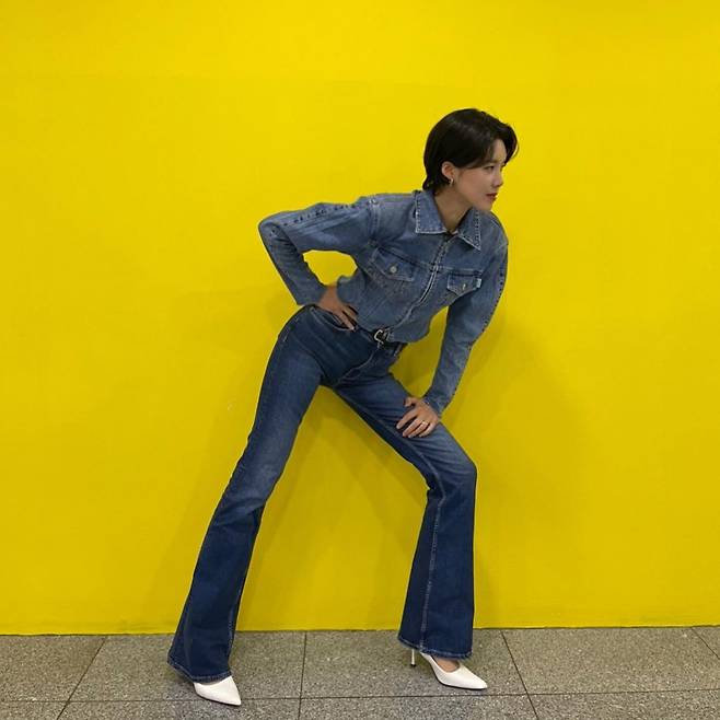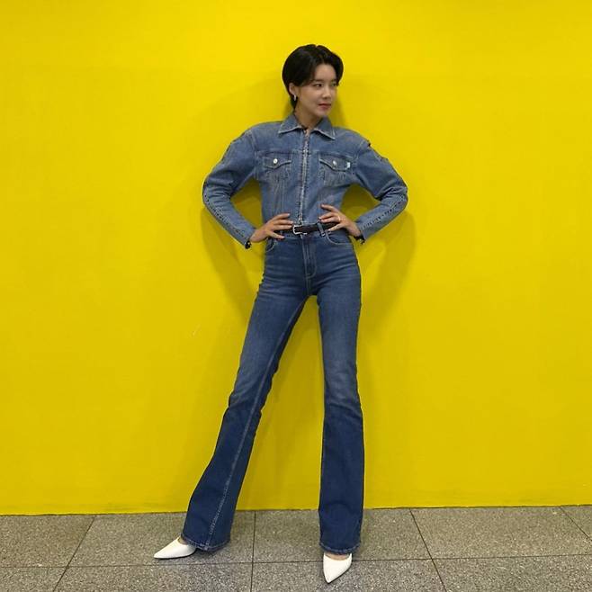 장도연, 174cm 다리 길이 실화야?..청청 패션도 '찰떡'