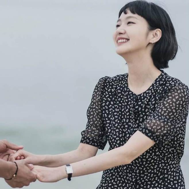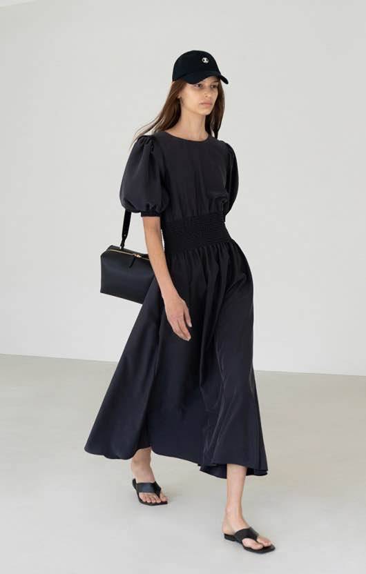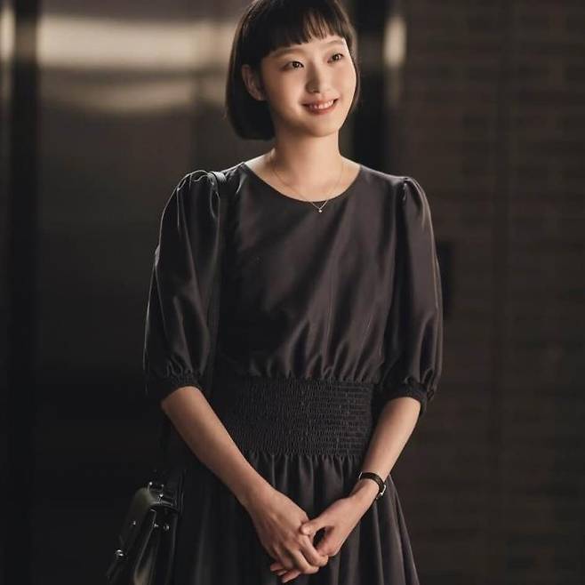 그녀의 생일날 사랑스러운 퍼프 슬리브 드레스를 입은 유미. 퍼프소매지만 시크한 블랙 컬러를 골라 샤랄라한 스타일링은 지양하는 모습입니다. 여기에 깔끔한 손목시계가 정갈한 느낌을 더해주죠.