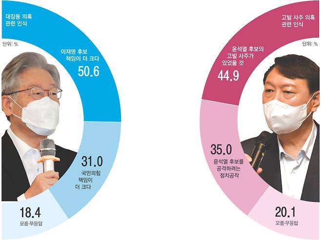 "대장동, 이재명 책임" 50%.."고발 사주, 윤석열 개입" 45% [창간 기획 - 대선 여론조사]