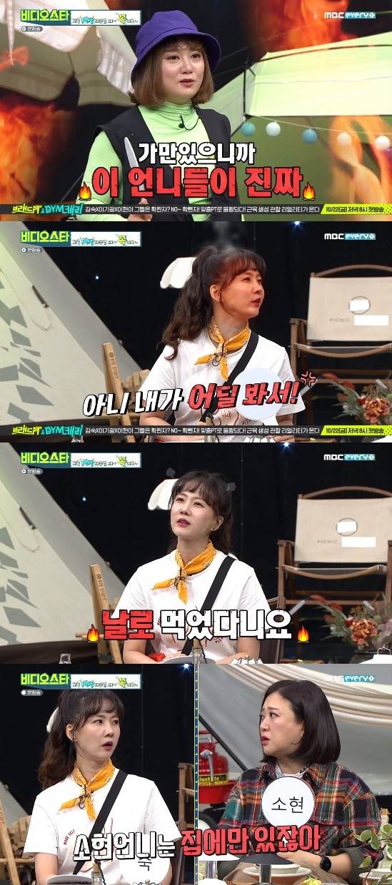 또 "녹화를 날로 먹는 사람은?"이라는 질문에는 박소현이 2표를 받았다. 박소현을 지목한 김숙은 "박소현 언니는 시작은 정말 좋다. 그런데 녹화가 후반부로 가면 동공에 힘이 빠지면서, 눈을 뜨고 자더라. 의자 밑으로 깨운 적도 있다"고 했고, 박나래 역시 "저도 눈을 뜨고 자는 것을 처음 봤다"고 공감했다.