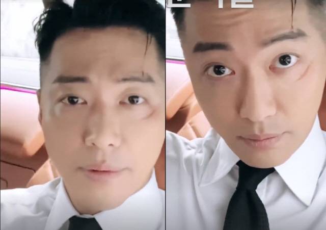 사진에는 흰 셔츠에 검은색 넥타이, 깔끔한 헤어와 얼굴에 상처가 난 남궁민의 모습이 담겼다.