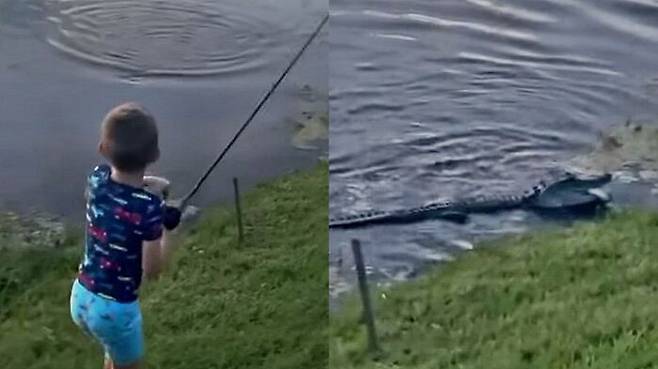 [Pick] 악몽 될 뻔한 7살배기 도전..물고기 낚자마자 튀어나온 악어