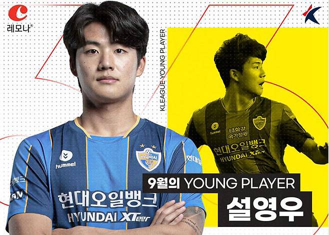 K리그 선두 울산의 수비수 설영우가 '9월의 영플레이어'로 뽑혔습니다.