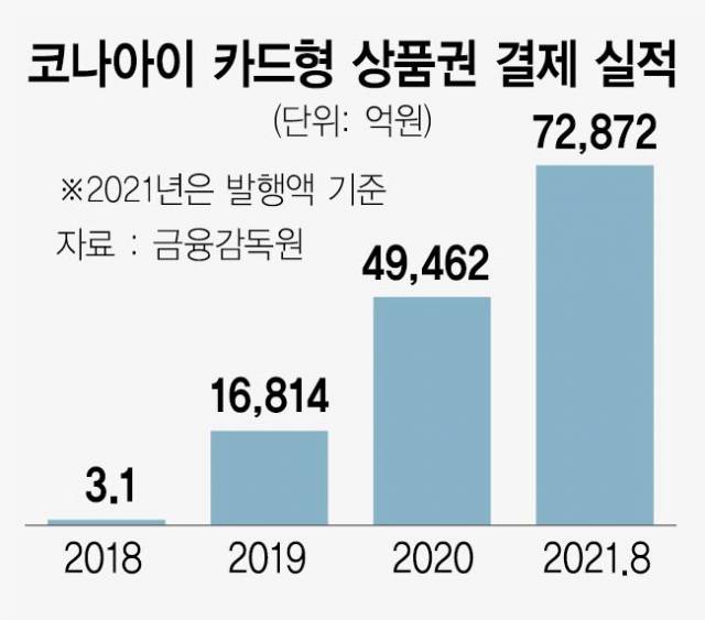 실제 코나아이의 카드형 지역화폐 발행액은 올해 1~8월 7조 2,000억 원을 넘겼다.