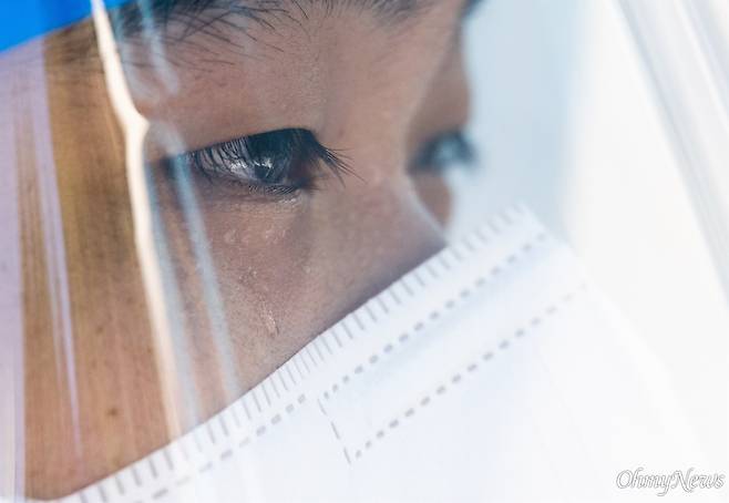 | ▲ 폭염특보가 내린 지난 7월 22일 오후 서울 종로구 탑골공원 앞 선별검사소에서 의료지원인력이 땀을 흘리며 일하고 있다. |