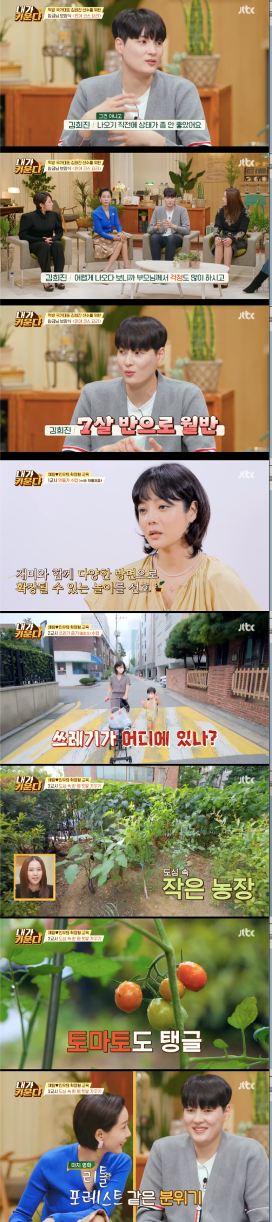 6일 오후 방송된 JTBC 예능 '용감한 솔로 육아–내가 키운다' 에는 배구선수 김희진이 김나영의 집을 방문하는 모습이 그려졌다.