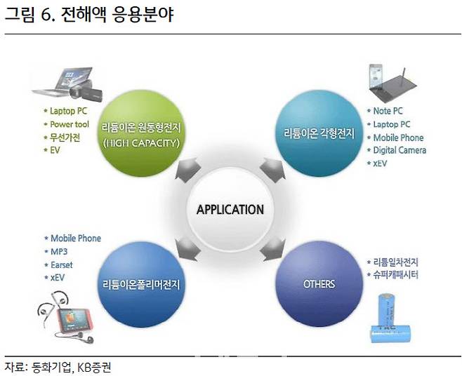 임상국 이수경 KB증권 연구원은 "동화일렉트로라이트는 삼성SDI, SK이노베이션 등 주요 고객 사업 확대에 따른 본격적인 수혜가 기대된다"며 "향후 미국 시장 진출 계획 및 전고체 배터리 전해질 소재 개발 모멘텀도 긍정적"이라고 설명했다.