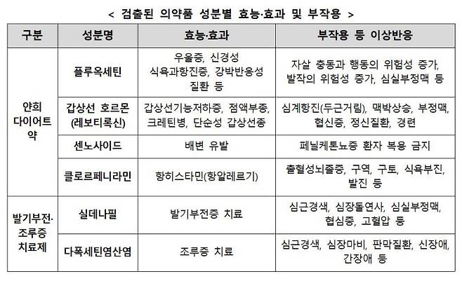 얀희다이어트약 이래도 드시겠습니까?..우울증치료 등 의약품 성분 4종 검출